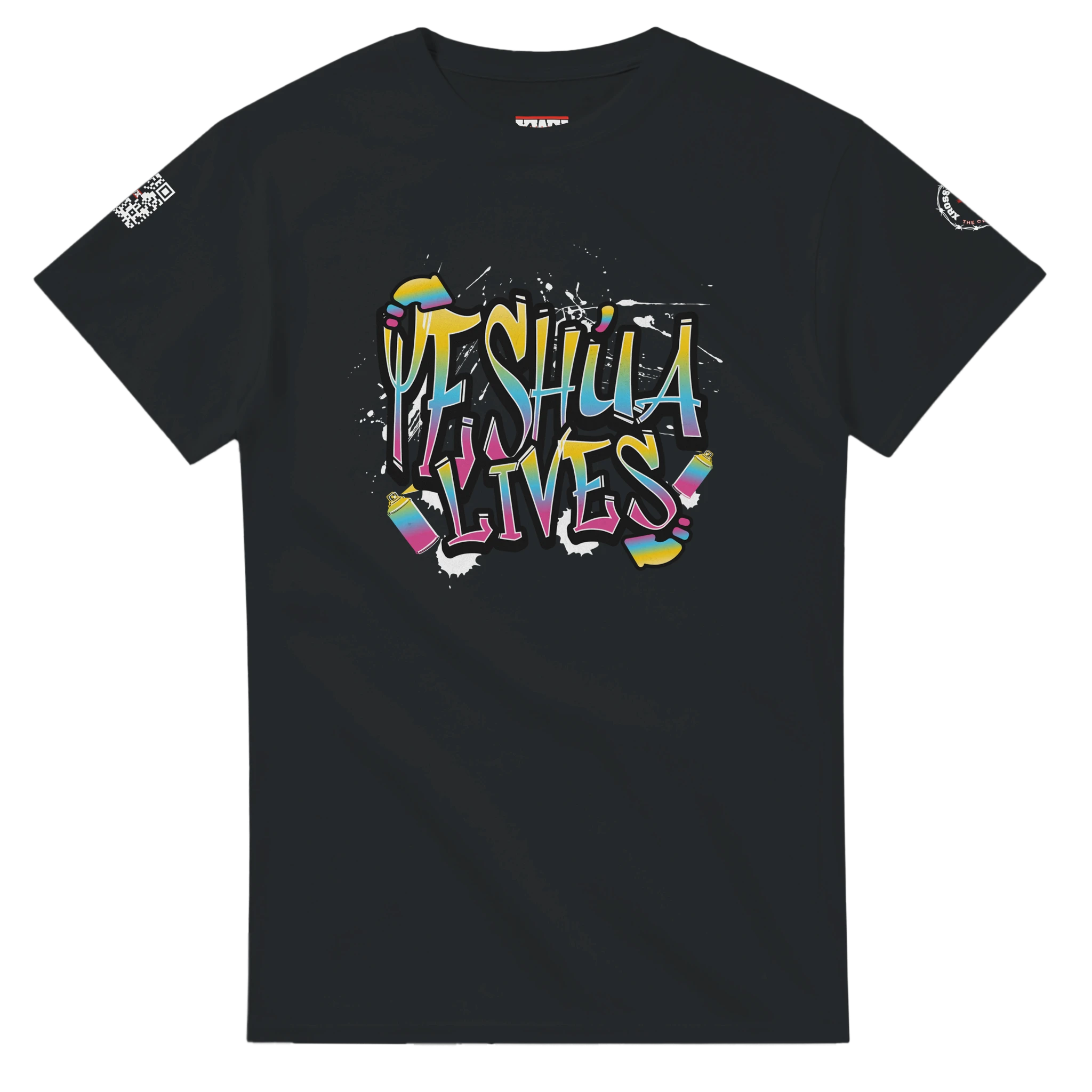 - Design: "Yeshua Lives" in vibrant Christian graffiti style